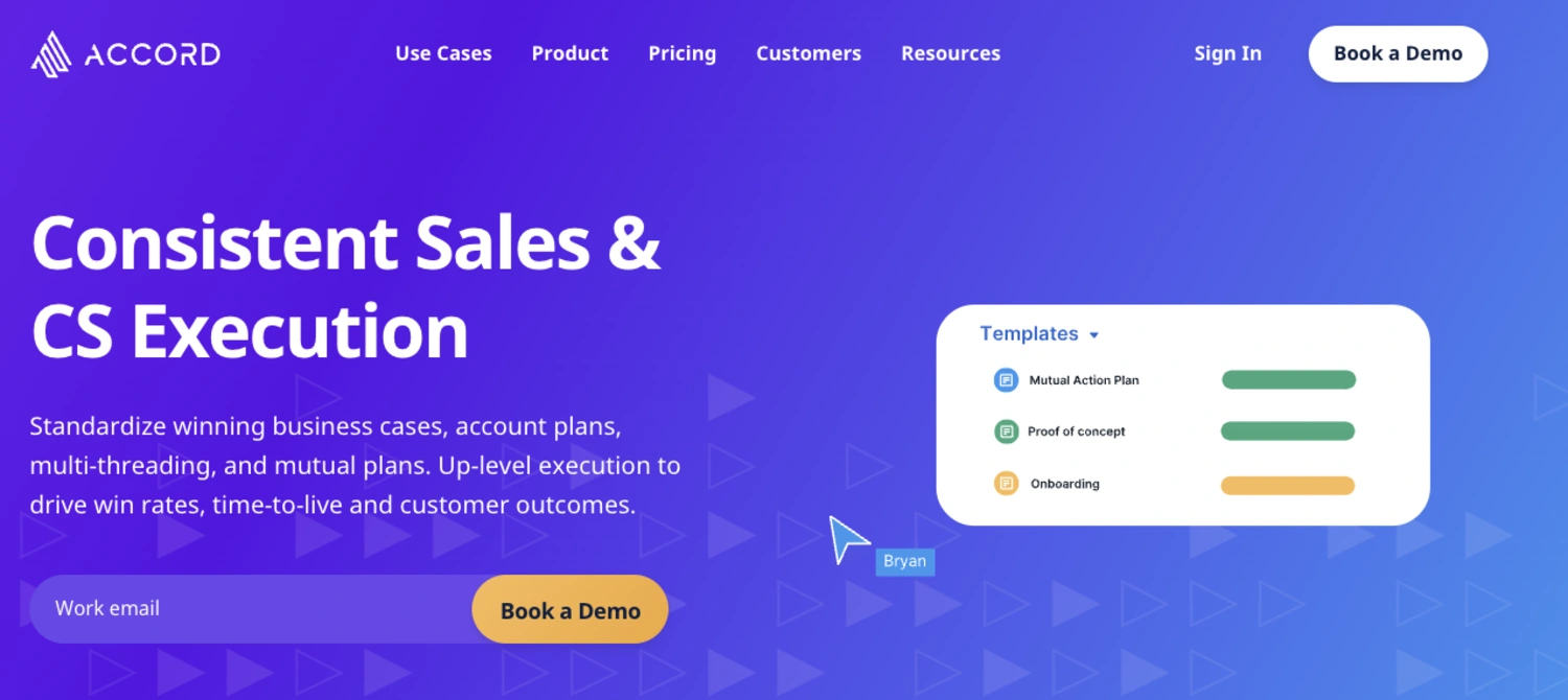 Accord empowers teams with standardized business cases, account plans, and multi-threading to up-level win rates, time-to-live, and customer outcomes.