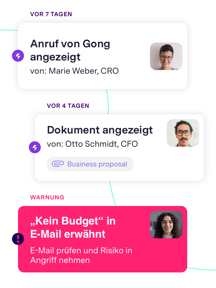 Was zeichnet Spitzenreiter aus? Welche Deals haben das größte Risiko? Welche Botschaften kommen bei Ihren Käufern an? Holen Sie sich eine Demo, um zu sehen, wie Gong helfen kann.