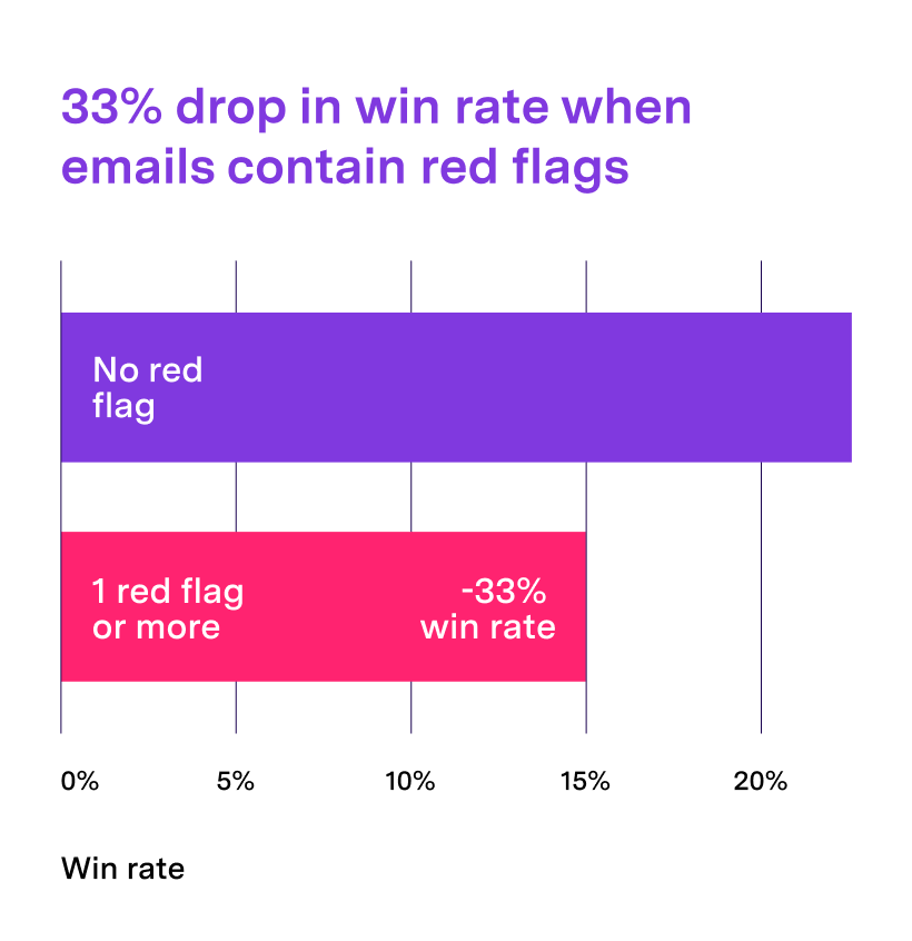 When one or more red flags exist in a deal’s emails, you have a 33% lower probability of winning the deal: