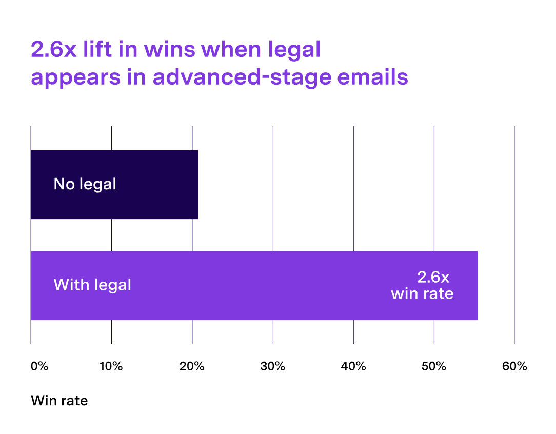 But we found that when legal is involved in the advanced stages of a deal, the win rate is 2.6x higher than when they’re not involved:
