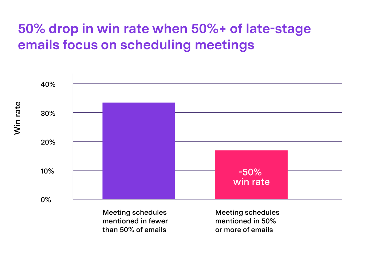 According to our data, if more than 50% of late-stage emails focus on meeting schedules, the win rate drops by 50%:
