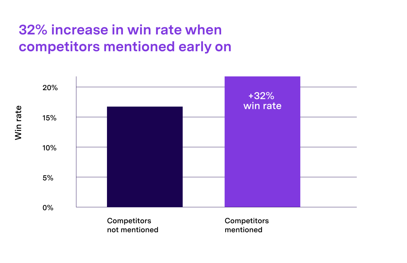 Early mentions of the competition increase the odds of winning an enterprise deal by 32% over not discussing the competition: