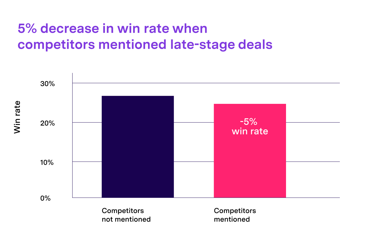 If competitors are mentioned in the late stages of a cycle, the deal is under threat and the odds of closing the deal decrease:
