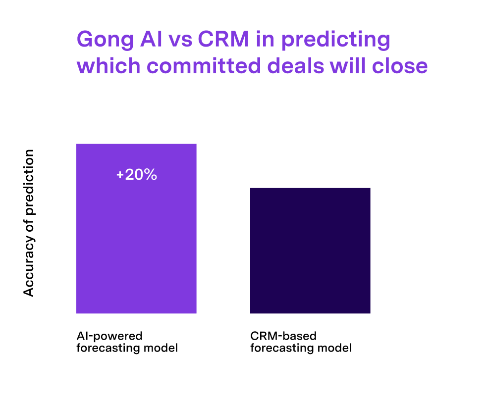 If you’re only looking at your CRM or relying on reps, expect a lower level of accuracy than you’d get with AI in predicting whether your committed deals will close.