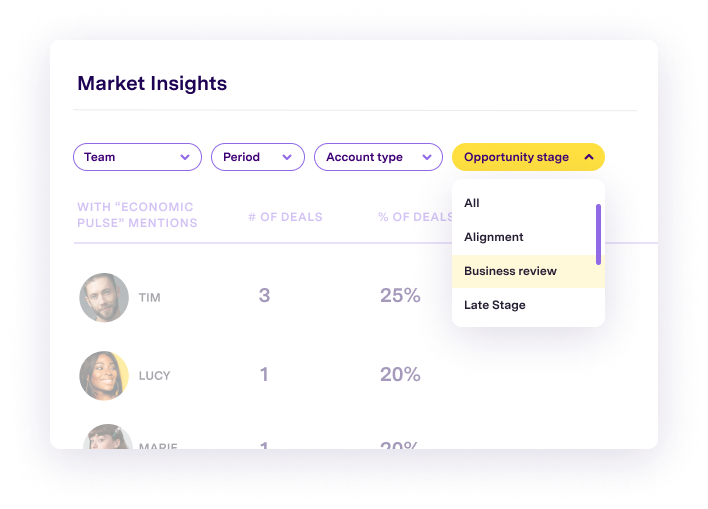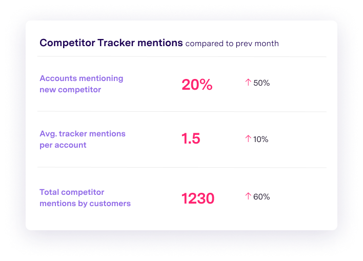 Customer needs are constantly changing. Are you adapting along with them? Economic headwinds. New business challenges. Emerging competitor mentions. Watch how trends evolve in real-time and track how these changes impact your pipeline.