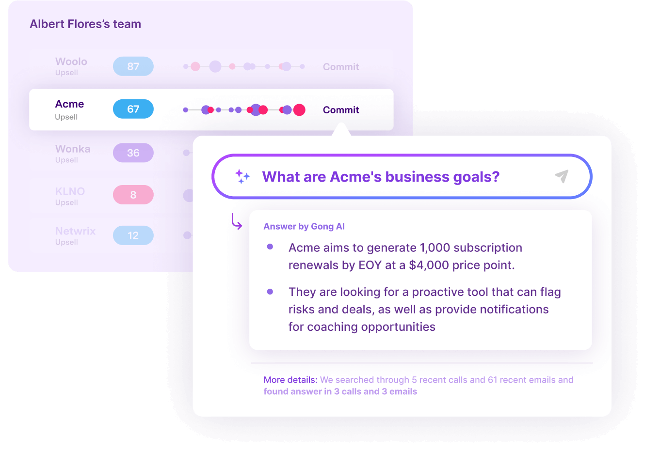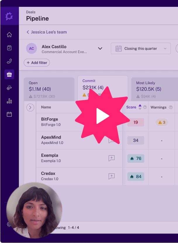 Go beyond call replays. Inspect your pipeline and develop winning deal strategies in seconds, with insights drawn from every (call and email) touchpoint across a deal and account lifecycle.
