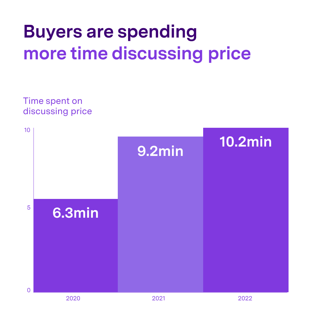With this increased emphasis on value, our data showed that time spent on pricing conversations and negotiations had increased 62% over the past two years.