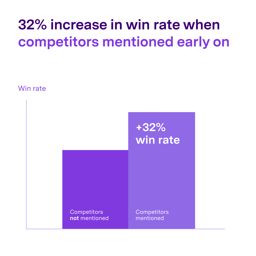 Early mentions of the competition increase the odds of winning an enterprise deal by 32% over not discussing the competition: